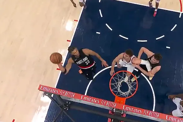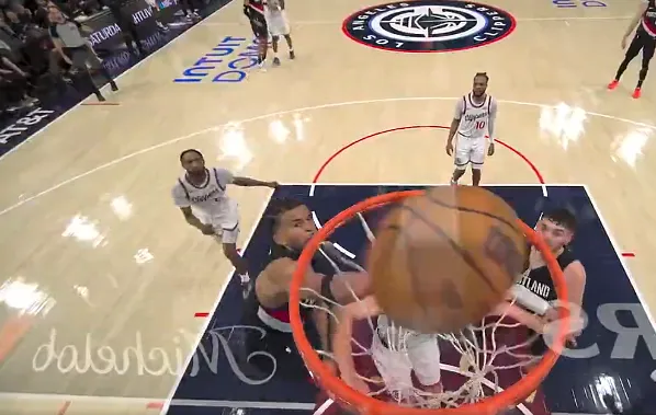 卡马拉空中摘板抡臂砸扣可惜扣飞,开拓者还领先快船10分