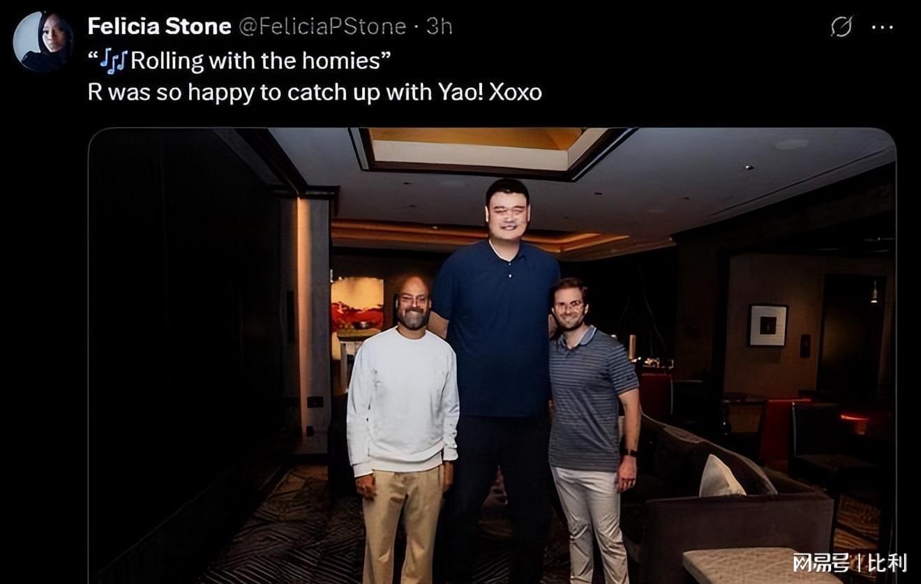 他配文传递着大家的喜悦:“和兄弟们在一起的时光!非常高兴能见到姚明!”